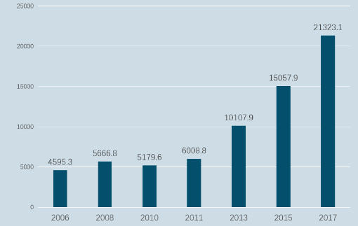 近年來(lái),加拿大的責(zé)任投資呈現(xiàn)迅速增長(zhǎng)態(tài)勢(shì)。據(jù)加拿大責(zé)任投資聯(lián)盟[1](Canada Responsible Investment Association,簡(jiǎn)稱RIA)統(tǒng)計(jì),加拿大責(zé)任投資2015年至2017年間增長(zhǎng)了41.6%;2017年,加拿大責(zé)任投資總額約為2.13萬(wàn)億加元,已超過(guò)投資市場(chǎng)總額的50%。今年1至4月,加拿大又推出了11只可持續(xù)發(fā)展基金。